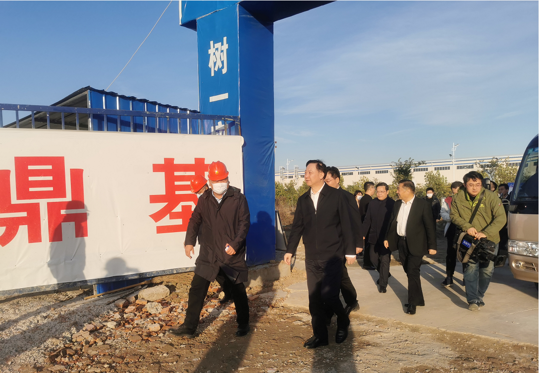 近日公司董事長潘吉慶先生接待蚌埠市市委書(shu) 記黃曉武到子公司安徽777盛世国际精細陶瓷有限公司調研,調研中黃曉武認真查看項目進度,鼓勵企業(ye) 搶抓發展機遇,細化施工計劃,掛圖作戰,倒排工期,進一步加快建設進度,早日投產(chan) 達效。